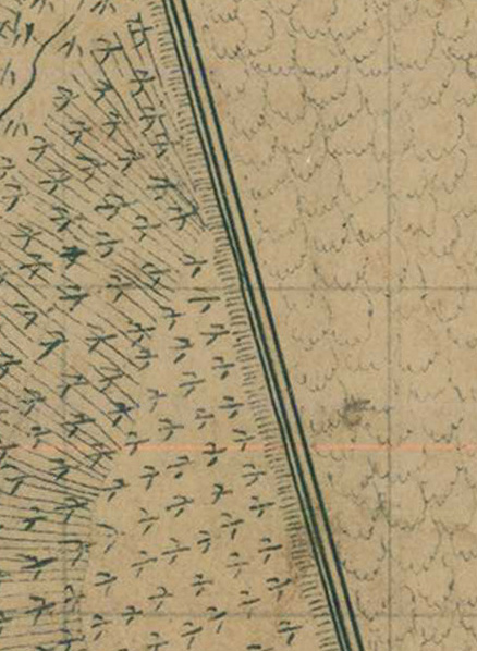 I wondered whether the way Guion drew these lines (three parallel lines) indicates anything about their construction, whether they are meant to be just earthworks, or whether they might include other materials such as tree trunks and stones — or something else. In the end, I settled on just plain “Entrenchments.” In his map title, Guion refers to the map as “Showing the line of intrenchments” around Raleigh, so I thought I would just stick with the generic term “Entrenchment Line” for the stretches of wall shown on the map.